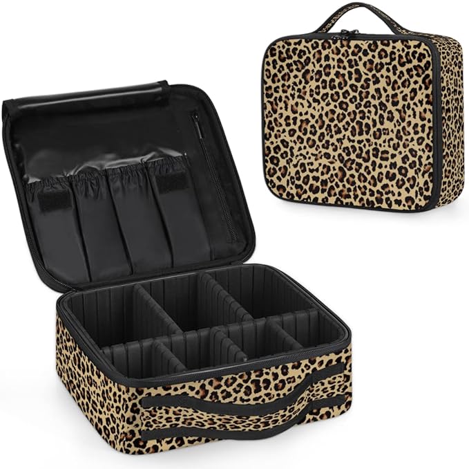 Travel Makeup Train Case Makeup Cosmetic Case Organizer with Adjustable Dividers (Leopard)